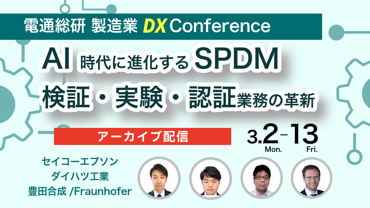 近年、SPDM(解析プロセスデータ管理)というキーワードへの注目度が急速に高まっています。AIを活用したCAEサロゲートモデル構築のためのデータ蓄積基盤となることも、注目度UPの理由の1つです。電通総研は20年前の2005年からSPDMプラットフォーム(i-SPiDM)を自社開発しており、解析のみならず実験あるいは法規認証業務までSPDM支援のスコープを拡大した「検証・評価DXソリューション」を展開しています。本セッションではソリューションの現状と今後についてご紹介します。