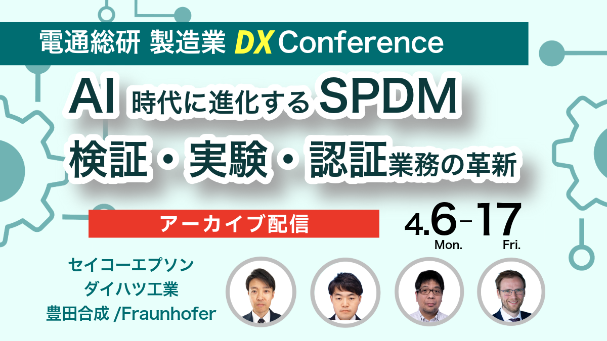 近年、SPDM(解析プロセスデータ管理)というキーワードへの注目度が急速に高まっています。AIを活用したCAEサロゲートモデル構築のためのデータ蓄積基盤となることも、注目度UPの理由の1つです。電通総研は20年前の2005年からSPDMプラットフォーム(i-SPiDM)を自社開発しており、解析のみならず実験あるいは法規認証業務までSPDM支援のスコープを拡大した「検証・評価DXソリューション」を展開しています。本セッションではソリューションの現状と今後についてご紹介します。