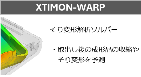 | XTIMON-AWARP | タルク入りPP材の反り解析の精度を向上する結晶性非強化樹脂用解析ソルバー |