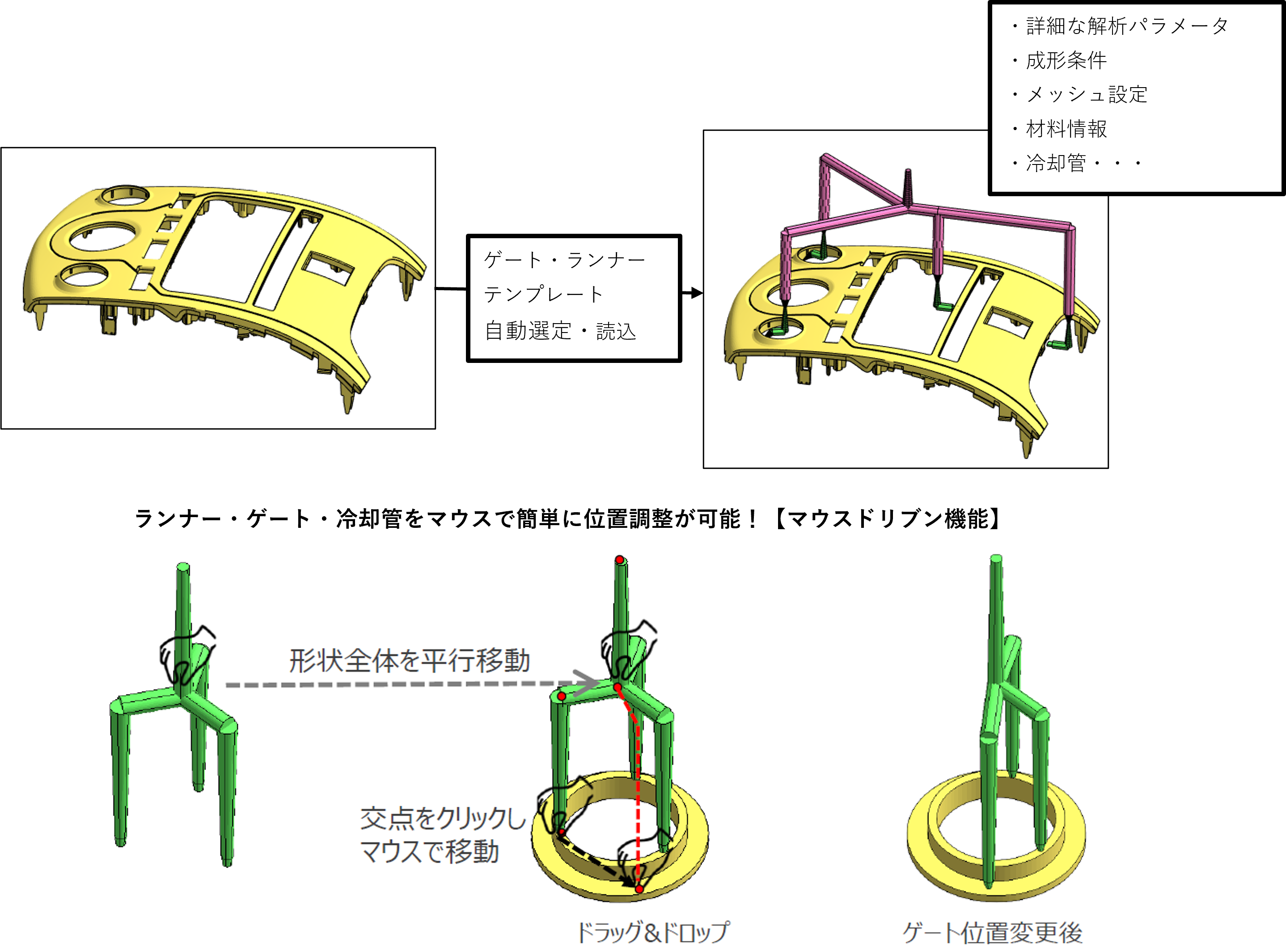 | AMDESS for XTIMON | ゲート配置、ウェルド制御、成形条件、リブ等の条件の自動最適化 |