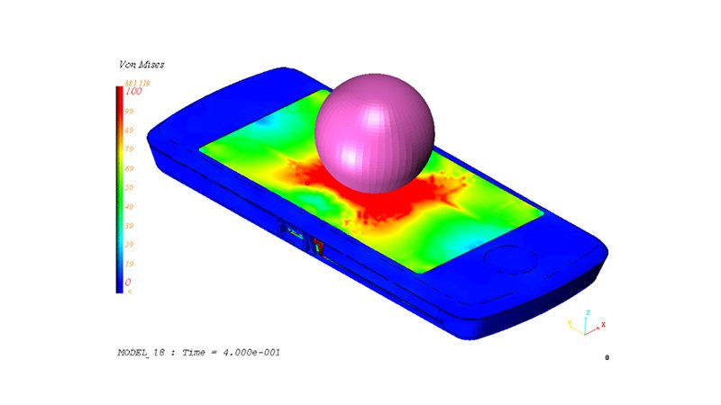 試作前の段階で電子機器の落下衝突解析を実施し、衝撃発生時の破損の有無や破損箇所の把握など、製品の耐衝撃性や品質保証・安全基準を評価します。