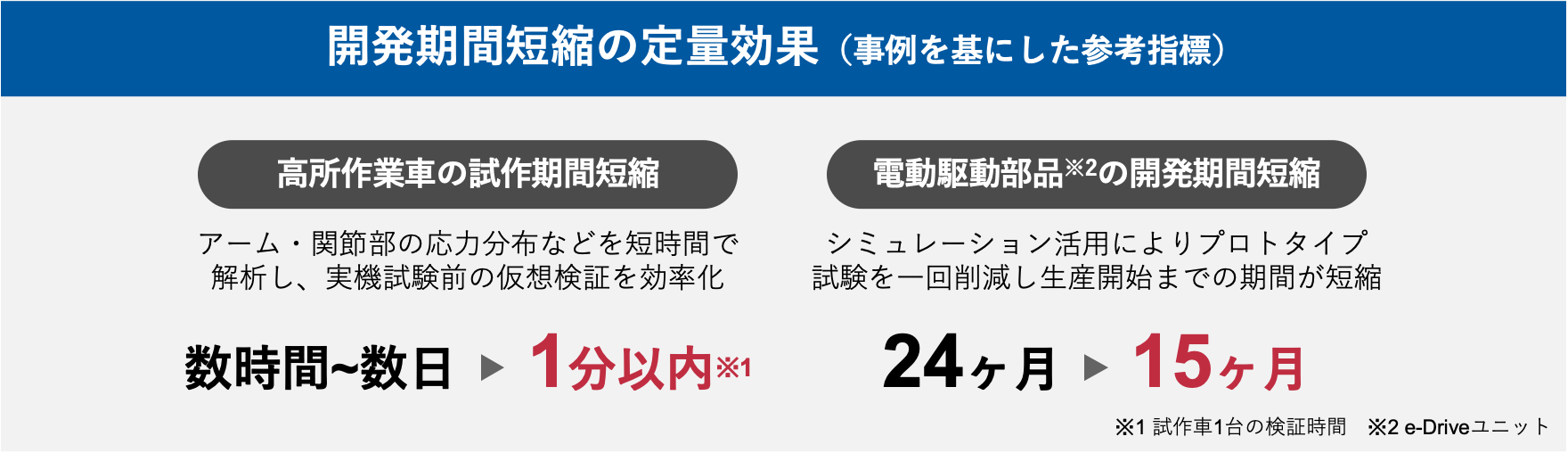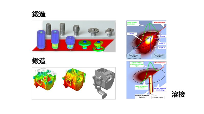 製品の設計・開発工程に加え、鍛造・溶接などの製造工程までCAE適用領域を拡大し、「製品開発のスピードと品質の両立」を支援します。新規分野や生産技術領域を含めた広範なCAE展開により、試作・評価の効率化と技術的意思決定の高度化を実現し、競争力強化に貢献します。